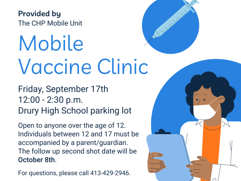 Mobile Vaccine Clinic at Drury High School, this Friday, September 17th.